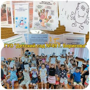 23.10.2025г. на базе ГУО «Детский сад №49 г.Борисова» в рамках реализации проекта «Борисов – здоровый город» психологом ГУ «Борисовский зональный ЦГИЭ» Гуменюк А.А. была проведена информационно-образовательная работа с воспитанниками на следующие темы: «Чистые руки – счастливые руки. Правила респираторного этикета» и «Иммунизация и я. Зачем нужна прививка?». С ребятами обсудили правила здоровья, повторили как правильно мыть руки, также была проведена игра «Плохие и хорошие советы», в которой дети активно поучаствовали. После мероприятия ребята получили раскраски и информационно-образовательные материалы.