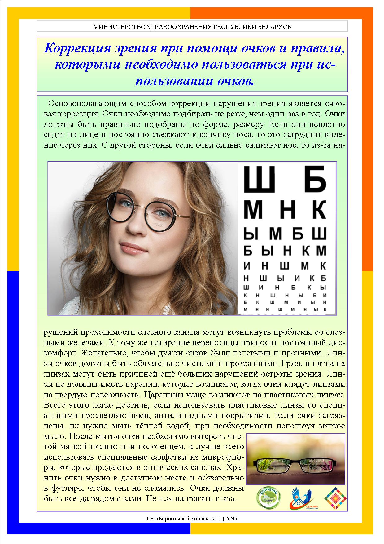 - Коррекция зрения при помощи очков и правила, которыми необходимо пользоваться при использовании очков